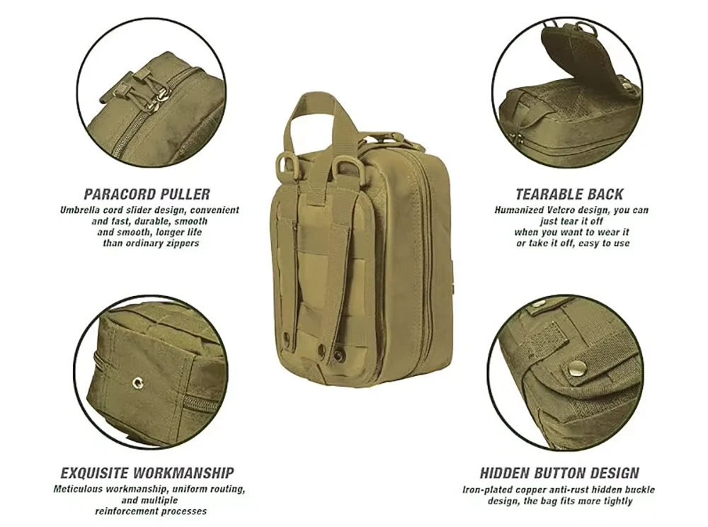 Molle Medical Pouch untuk taktikal, serangan, wargame, kargo gear, memburu, menembak, CS, ekspedisi, pengembaraan, liar, kelangsungan hidup padang gurun, mendaki, berkhemah, trekking, perjalanan, mendaki, berbasikal, memancing, gim, sukan lain.
