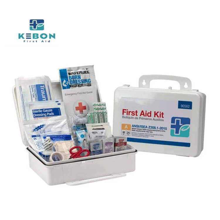 Termasuk 50+ item penting seperti pembalut pelekat, kasa steril, tisu antiseptik, topeng CPR, dan selimut kecemasan