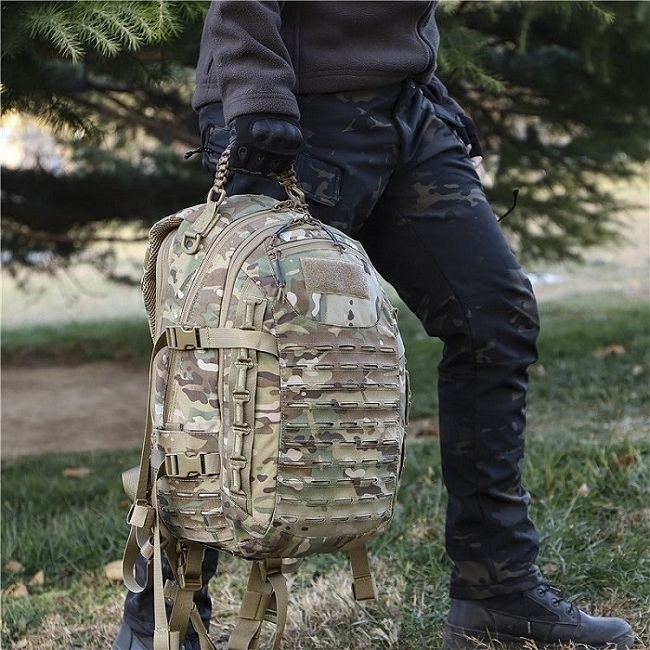 Ciri-ciri utama: Ketahanan yang tidak dapat ditandingi: Dibuat dengan 1000D Cordura® nilon, jahitan berkepadatan tinggi, dan zipper ykk premium untuk kebolehpercayaan yang muktamad. Panel belakang dengan abah-abah yang boleh laras. Tali sternum dan tali pinggang pinggang yang boleh ditanggalkan dengan cekap mengedarkan berat badan untuk keselesaan pada treks panjang. Pertubuhan strategik: petak utama, poket penghidratan yang berdedikasi, panel admin untuk alat-alat kecil, dan lengan komputer riba yang empuk. Airsoft/Milsim, Hiking/Berkhemah, Cari & Penyelamat, Latihan Taktikal.